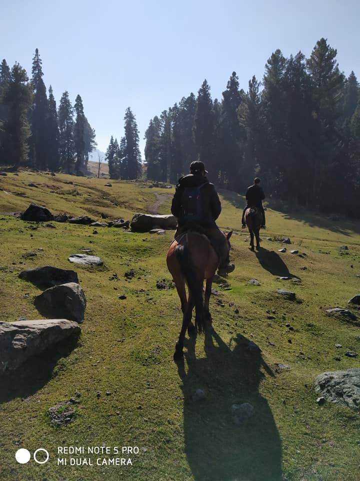 Pahalgham is a perfect place to enjoy the natural beauty enriched with mountain , Pine trees and crisp confire forest .Here nature is abundant with beauty with the diversity of flora and fauna.After bargaining a lot we hired horse to visit some beautiful place such Baisaran (also known as mini Switzerland) , Kashmir Valley ,Dubian ,waterfall and shepherd village. Journey of ours to baisaran began on the back of the horses and we learn some basics, leaning forward while climbing up and keeping the weight behind while going down.