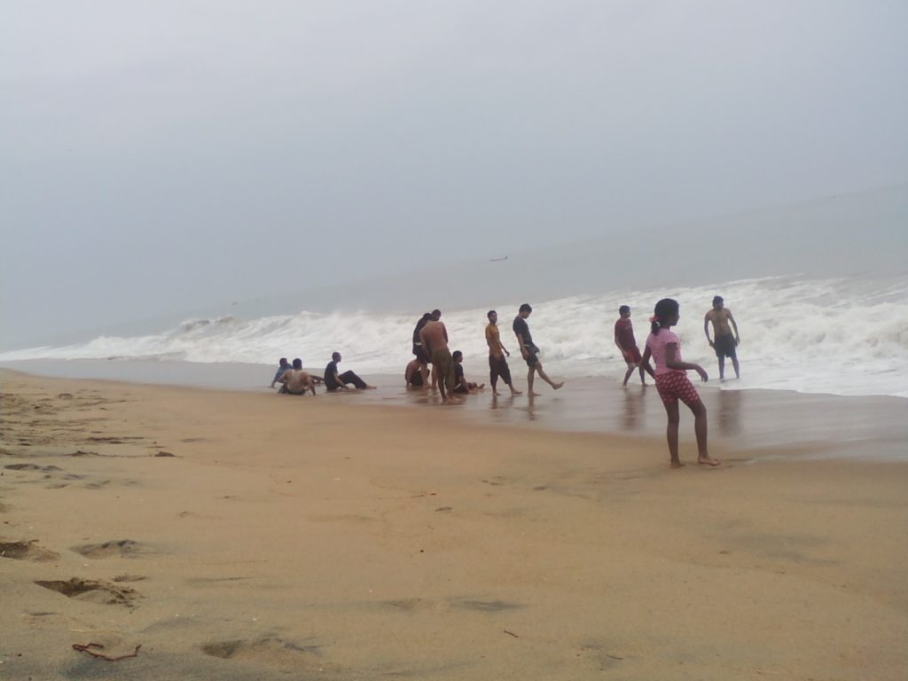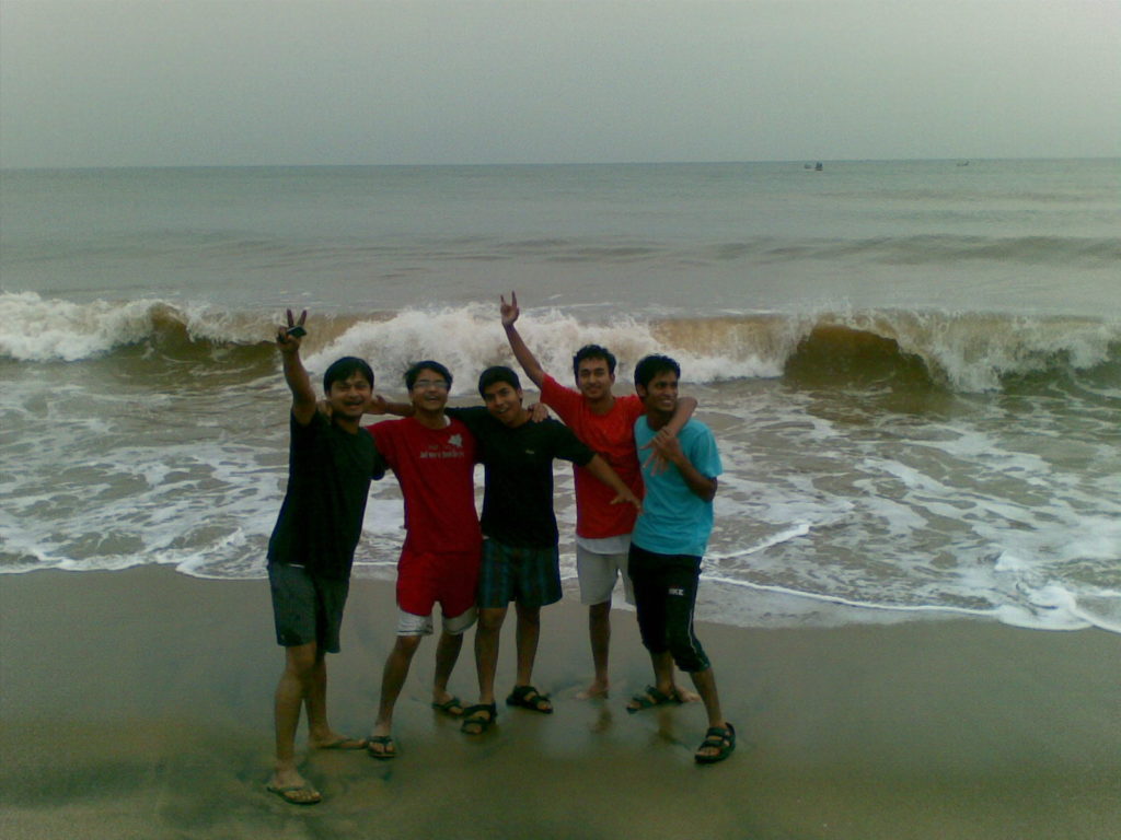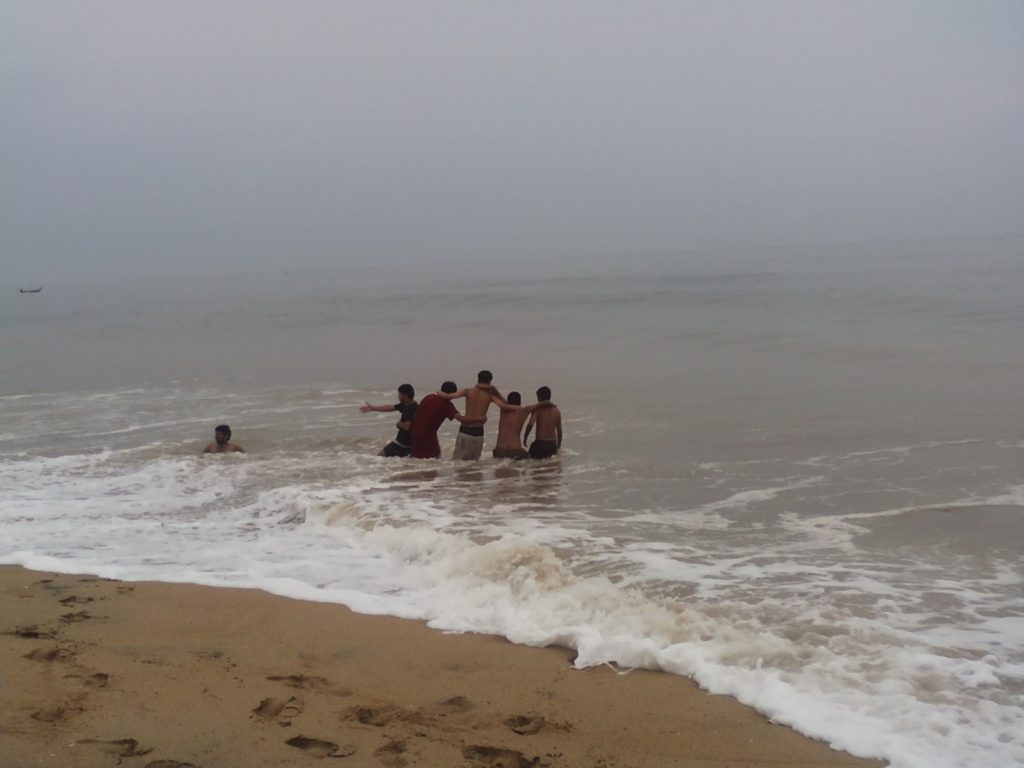It was colder in the morning while winds were still high. We decided to, then and there, go to the beach to watch the sunrise. There were not so many people on the beach except the local fishermen and some visitors. The shore was full of sea-shells washed away by the high tides of the night.We decided to soak our selves in the sea.