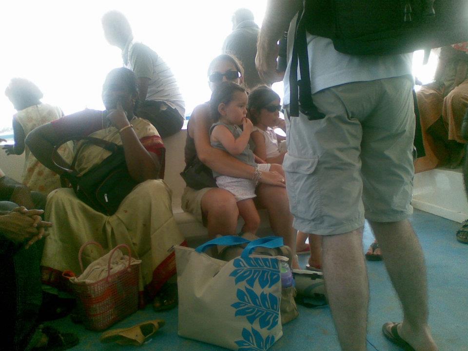A small motor boat accomodated 14 people only .Nice, clean boat .Within a short time we entered into the main stream of Chunnambar river (similar to backwater ) . The boat journey was really fantastic ….. cool breeze & waves, greeneries on both sides ….. an unforgettable experiences !! It took 20 mins to reach our destination – Paradise Beach Island .