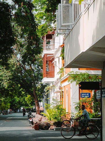 White Town is like every photographers dream. The typical Pondicherry scenes were vintage bicycles perched up against vibrant yellow walls with oil lamps.